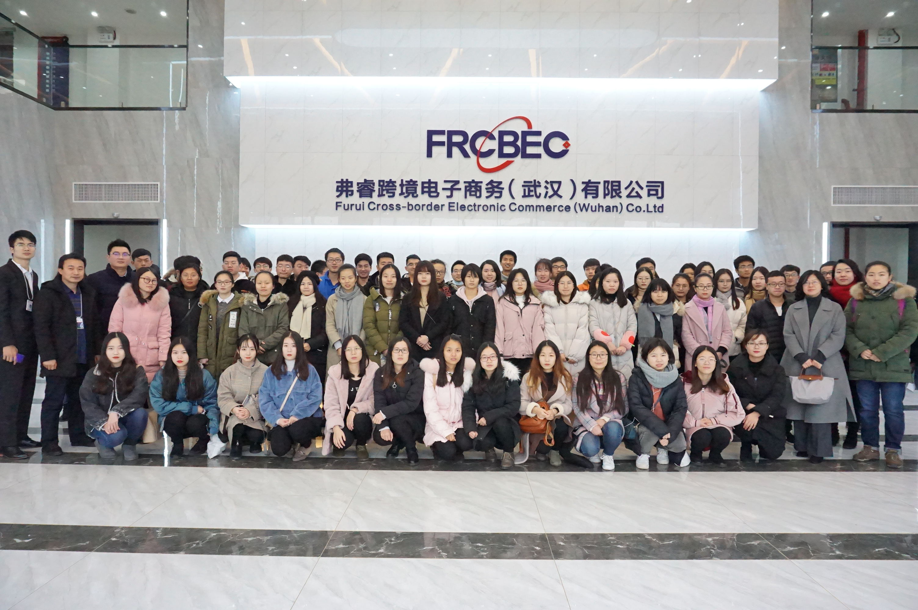 2018年12月26日,国际经济与贸易教研室四位老师与员工科刘寒月老师带领15级国际商务专业与17级国际商务专升本79名员工,前往武汉弗睿跨境电子商务有限公司参观学习,弗睿总经理张建波、电商学院主任余浩然热情接待了公司师生一行。