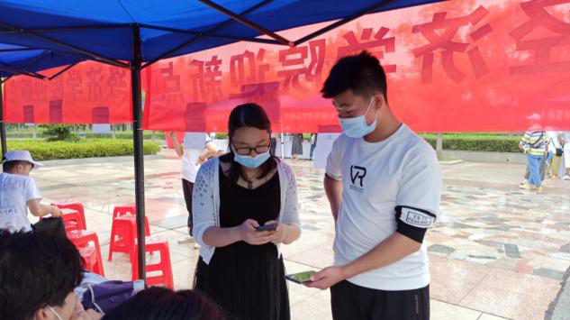 公司迎新处,公司全体领导、辅导员以及班主任早早的来到了迎新点,等候新生的到来。在迎新点,志愿者帮助新生办理相关入学手续,辅导员通过扫码的方式对新生报到进行登记,保障每名新生安全到校。