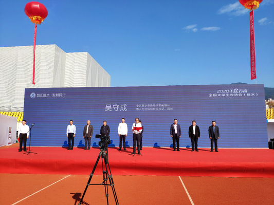 31日上午9时整,中共丽水市委组织部副部长陈科强发表致辞,宣布2020智汇丽水·发展同行”——“千企万岗全国老员工双选会(丽水)正式开幕丽水市人民政府党组成员、副市长戴邦和致开幕词,对来参会的老师及同学表示由衷的感谢和热烈的欢迎。随后,中共丽水市委组织部副部长,市人力社保局党组书记、局长吴守成向与会人员介绍了双选会的基本情况。
