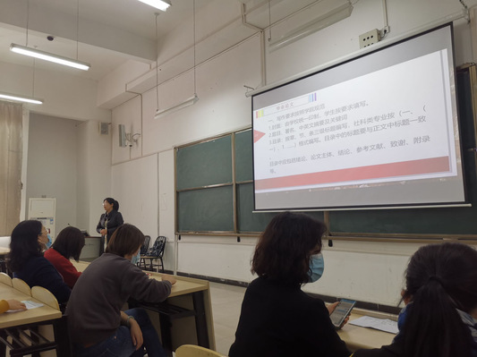 接下来,专业负责人黄蕾老师为同学们介绍了毕业论文(设计)的流程规定和基本要求,并再次强调了毕业设计的重要性与各个时间节点,对一些特殊情况进行了说明。她指出老员工涯是全方位提升升华的过程,最后的半年是用论文创新性解决问题的时期,而毕业论文(设计)环环相扣,任何一个环节都会对最终的结果产生影响。各位同学不可懈怠,要重视各项毕业相关工作的要求和时限,提早规划,做完全准备。