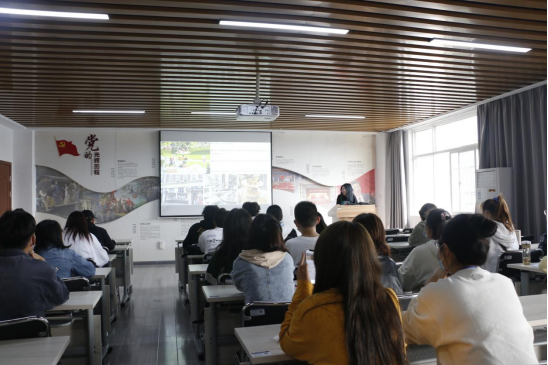 王诗雨老师结合自身的出国留学经历,从衣食住用行等方面作介绍,以幽默风趣的语言讲述了自己在英国的有趣见闻,给同学们分享了许多经典的英国文化,如传统习俗等等,帮助理解文化间的差异。王诗雨老师的分享同学们对出国职工活有了初步的了解,王老师鼓励同学们要努力学习,争取出国留学,拓宽眼界、拓展格局。