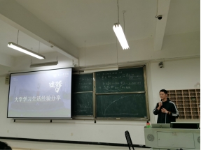 吴承昊同学不仅成绩优秀,更是创业的典型优秀代表。他为新生们讲述了自己大学四年的经历,分享了他从迷茫空虚到开始寻找个人价值的心路历程;自学各种技能,创办武汉军创之星创业服务有限公司,组织参与数十项省市级实践活动,获得4项专利和40多项奖项。他以他丰富的大学经验告诉新生们,经过反复试错后才能找到更加适合自己的道路,在实践中学习与个人目标相匹配的技能和良好的心态是提升能力的关键。